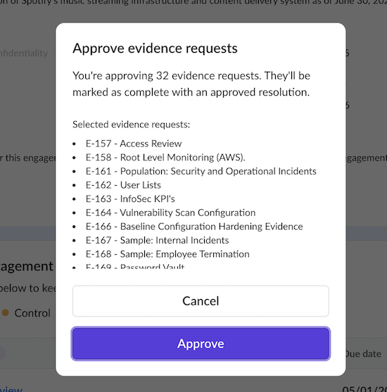 Now you can bulk approve evidence requests with just a few clicks. Select what you're ready to approve, hit approve, and move on.