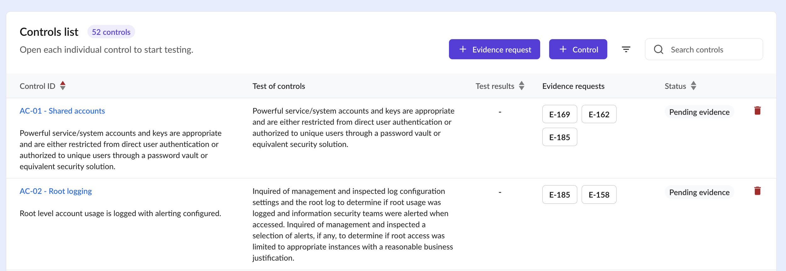We added summary counters throughout Audora to show the total number of controls and audits in your workspace and no more mentally tallying rows or scrolling to estimate scope.