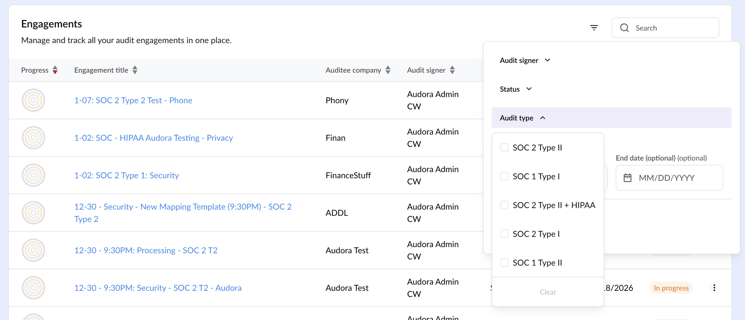 With new progress rings, you can now see the real-time completion status of every engagement right from the Engagements list. Click into an engagement and you’ll also see status rings inside, with hover details that show what’s completed vs what’s remaining (controls and evidence requests).